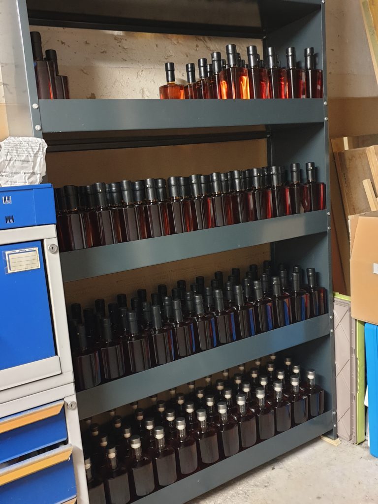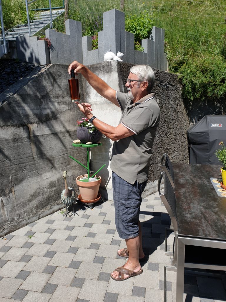 Diejenigen, die sich für den Newsletter angemeldet haben, werden sobald die Flaschen verkaufsbereit sind, per Mail informiert und sind so allen anderen Interessenten eine Nasenlänge voraus! 😉 Im Mail wird nebst einem Bild der fertigen Flasche auch das Tasting sowie Volumen-Stärke etc. enthalten sein. Natürlich sind die bereits eingegangenen Vorbestellungen notiert und berücksichtigt.